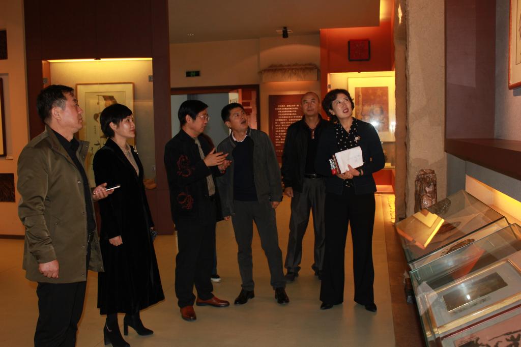 张建国一行参观了茶艺教学实训室、舞蹈教室、书画室、景谷艺术馆、仪祉图书馆文津阁四库全书珍藏室等场所。