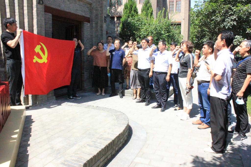 在纪念馆外,全体党员面对鲜红的党旗庄严宣誓,重温入党誓词。铿锵有力的句句誓言展现出党员干部永远跟党走、坚决听党话的坚定信念和对党忠诚的矢志追求。