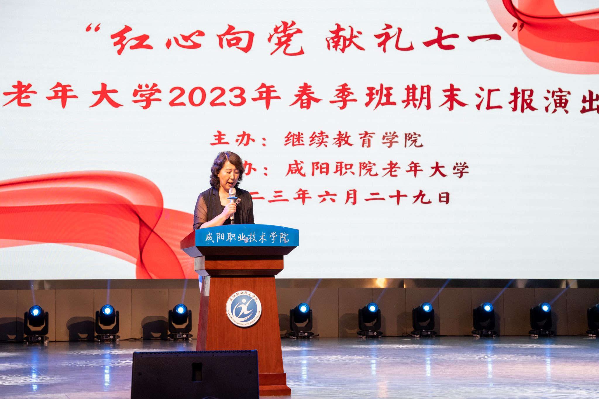 冯小菊在致辞中,在致辞中回顾了德信体育官网老年大学办学历程,办学宗旨、专业设置、发展规模、办学成绩,鼓励中老年朋友积极参加学习,丰富生活,愉悦身心,为和谐社会建设发光发热,以精彩的文艺表演献礼中国共产党成立102周年。