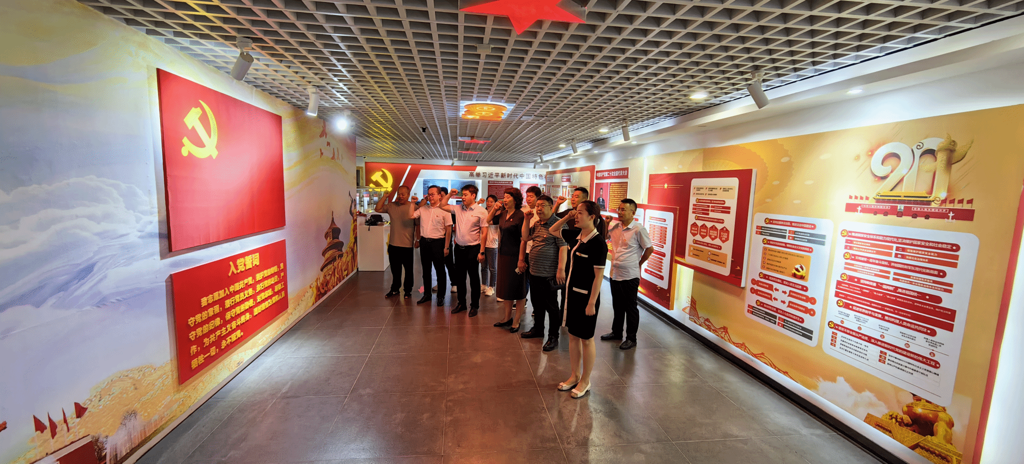 参观学习结束后,全体党员在展馆大厅庄严肃立,面向鲜红的党旗重温入党誓词,用铿锵有力的誓言表达对党和人民的绝对忠诚和热爱。