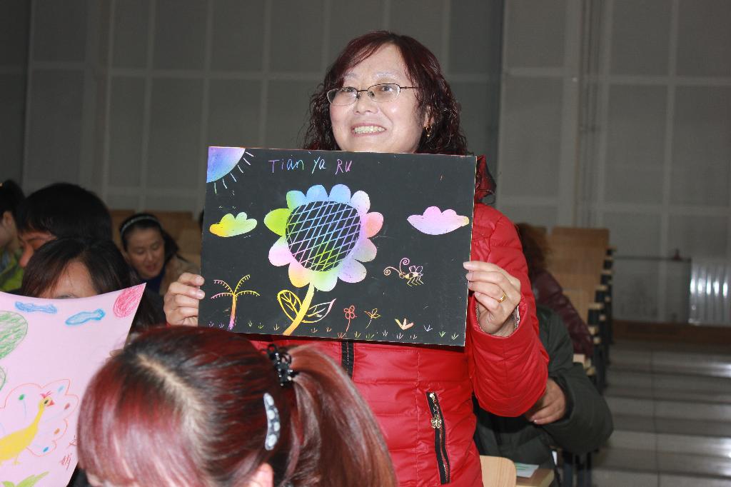 汇报演出中,学员们倾情表演了舞蹈《马兰谣》、《轧彩灯》、《青春魅力》、三拍舞步《摩登女孩》等舞蹈节目。在手工制作展示环节中,学员们或独立、或协作现场绘制了生动活泼的绘画和手工作品。诚挚而又热烈的掌声,是学员老师们先给自己最好的礼物。