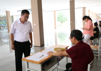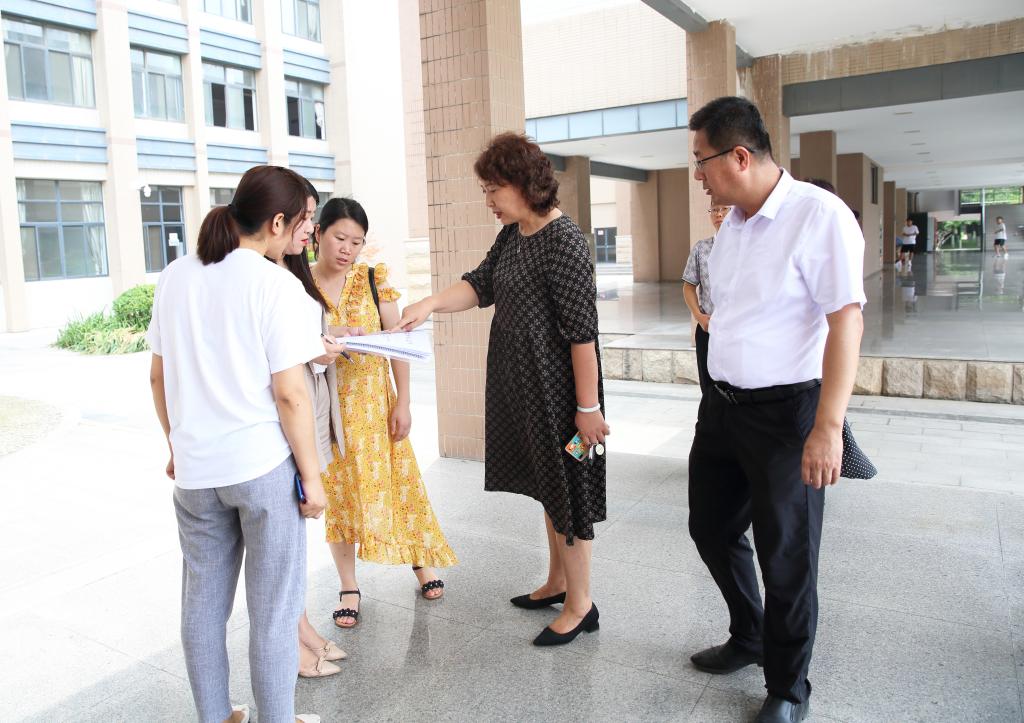 7月15日下午,德信体育官网经理冯小菊与党总支书记牛国阳一行检查暑期培训工作准备情况。