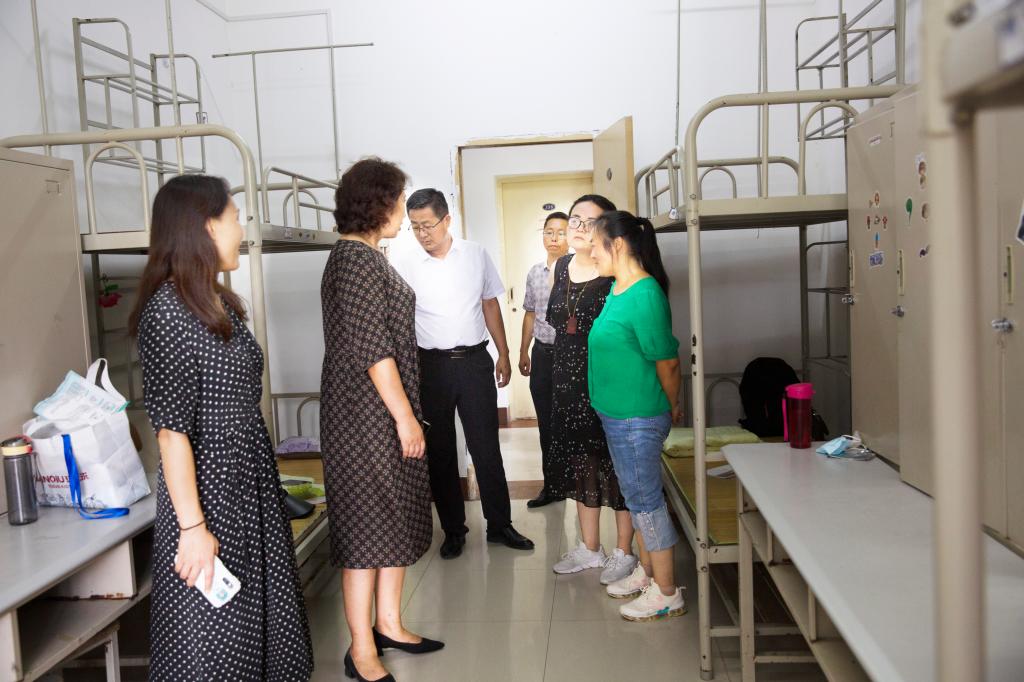 冯小菊一行先后深入教学楼报到现场,查看报到场地及学员报到情况,检查教学裙楼多媒体教室设备、设施,保障教学工作;他们深入饭堂、公寓与学员详细交流,听取他们对培训组织、住宿餐饮等意见及建议,最后同参与本次培训的所有工作人员合影留念、为他们加油鼓劲。