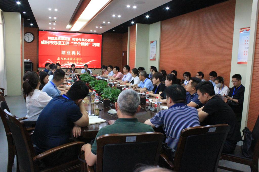 6月17日上午,“解放思想谋发展、转变作风办实事”咸阳市劳模工匠“三个精神”培训班在德信体育信息楼225会议室举行了隆重的结业典礼。咸阳市总工会经济和劳动保护部部长张军、德信体育公司党总支书记牛国阳、德信体育官网项目培训办主任张铭蕊及培训项目相关人员参加了结业典礼。典礼由德信体育官网副经理行小利主持。