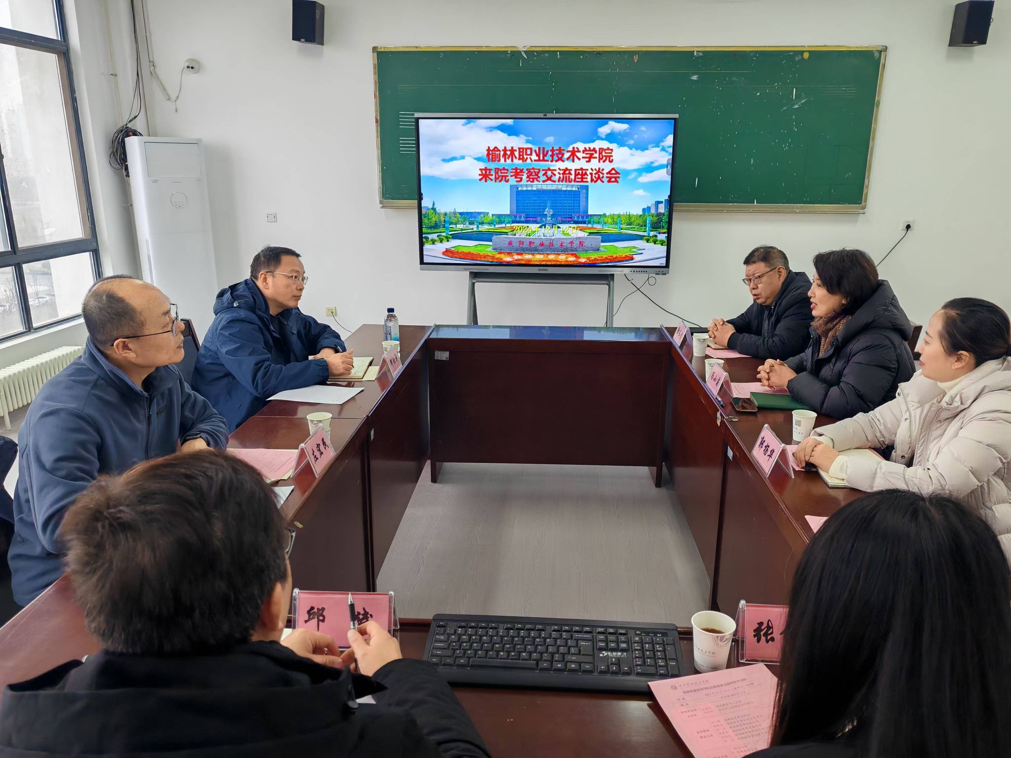 12月12日,榆林职业技术公司继续教育中心主任左宏民一行来公司考察交流。德信体育官网经理冯小菊、党总支书记郭杨华,副经理刘波、副经理徐长青及相关科室负责人参加座谈,座谈会由德信体育官网经理冯小菊主持。