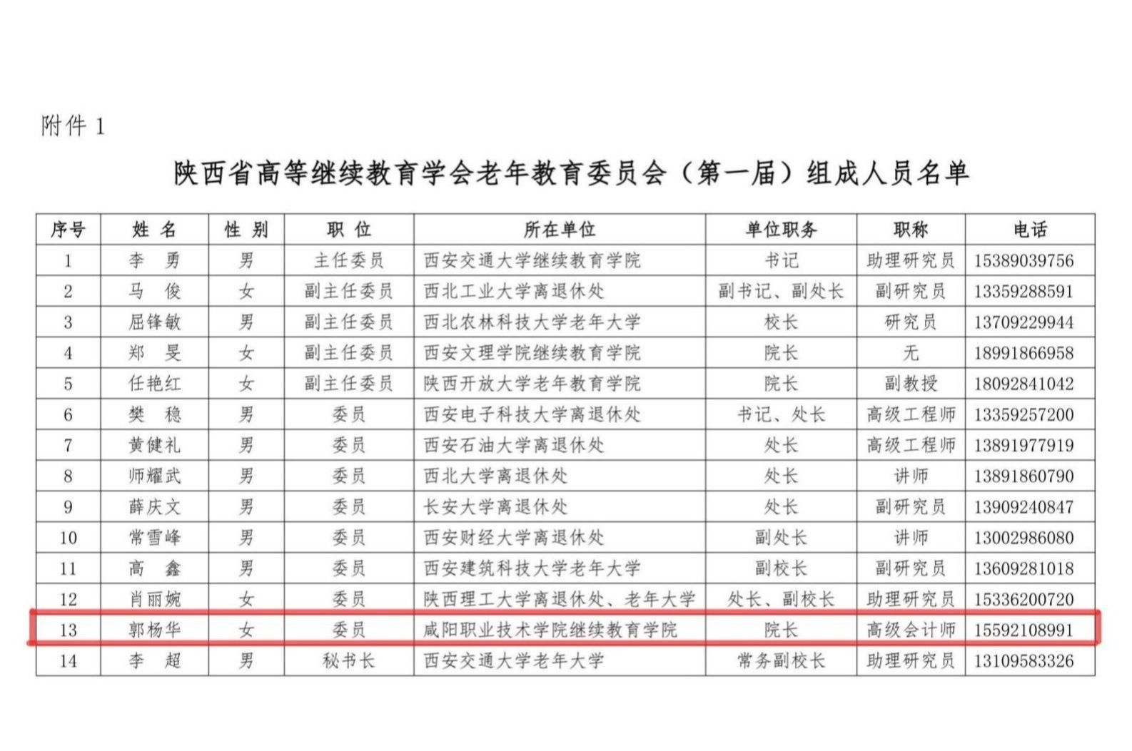 郭杨华经理当选陕西省高等继续教育学会老年教育委员会委员