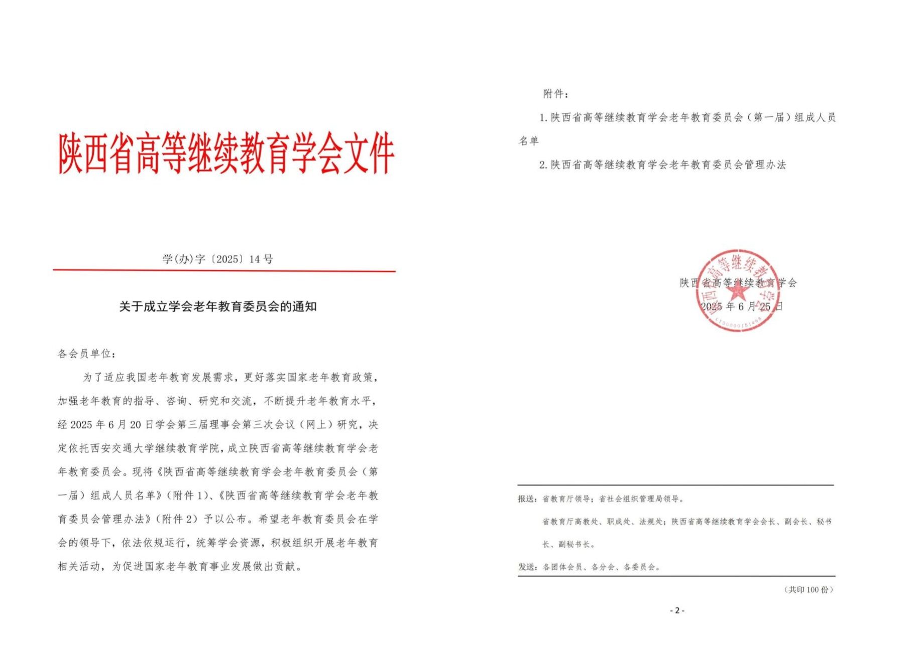 会上,公布了陕西省高等继续教育学会第一届老年教育委员会组成人员名单。公司德信体育官网经理郭杨华当选陕西省高等继续教育学会老年教育委员会委员。