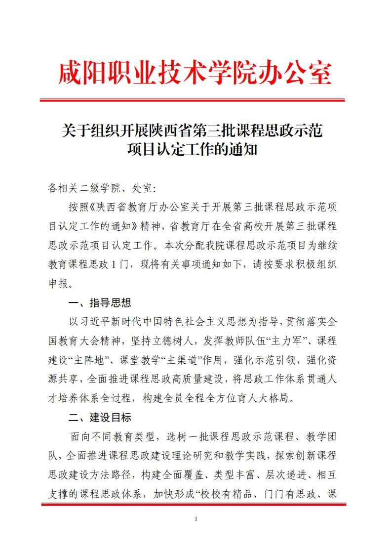 关于组织开展陕西省第三批课程思政示范项目认定工作的通知