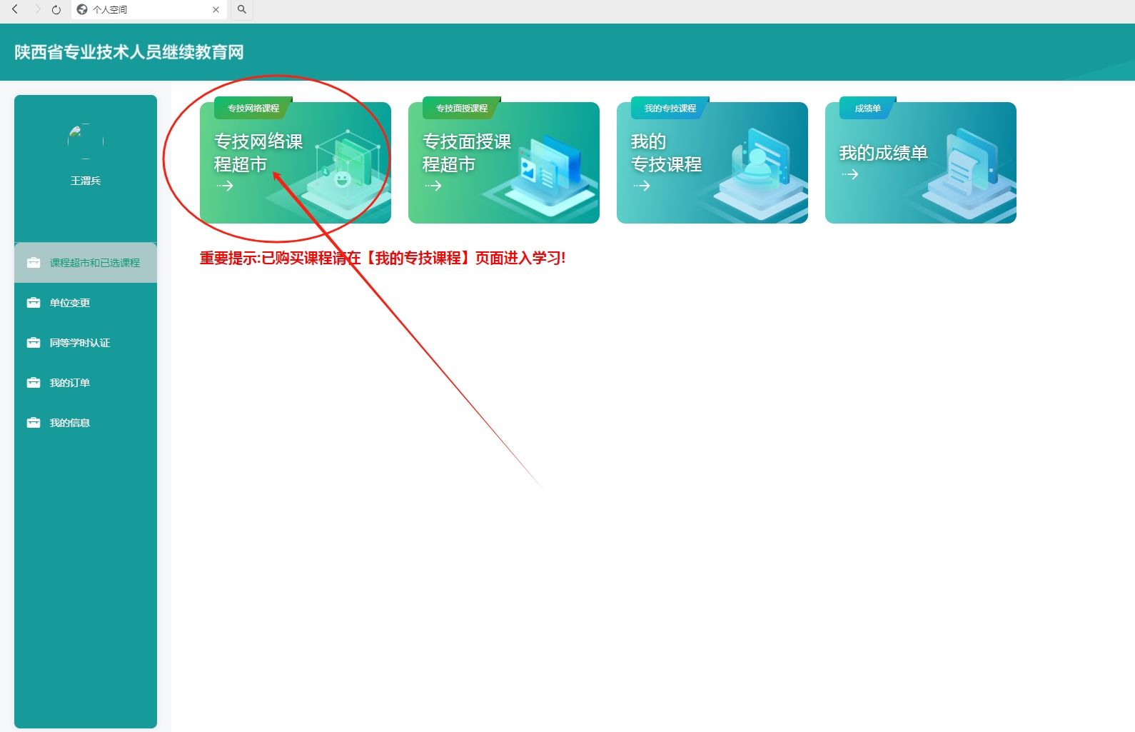 第二步,点击“专技网络课程超市”图片,跳转下一步