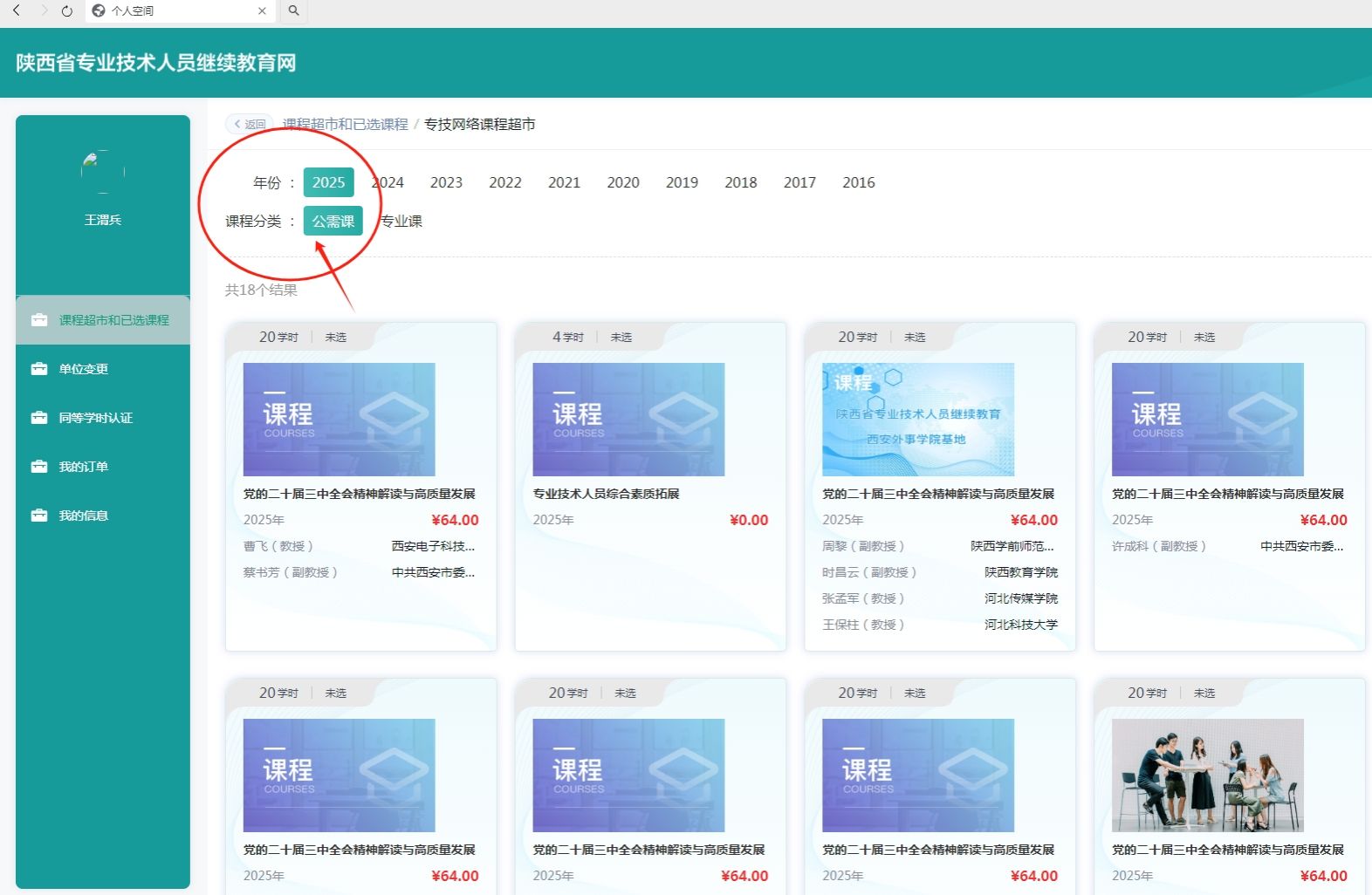 公司2025年公需课已上线,欢迎有培训需求的专业技术人员登陆陕西省专业技术人员继续教育网,微信扫码登陆个人平台,选择“专技网络课程超市”→“年份”→“公需课”的筛选流程,核对主讲人信息,购买公司2025年公需课课程。