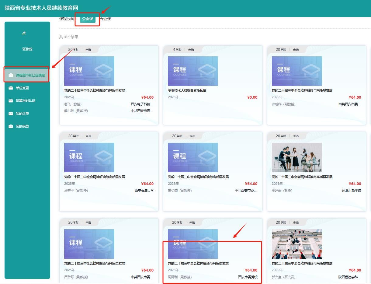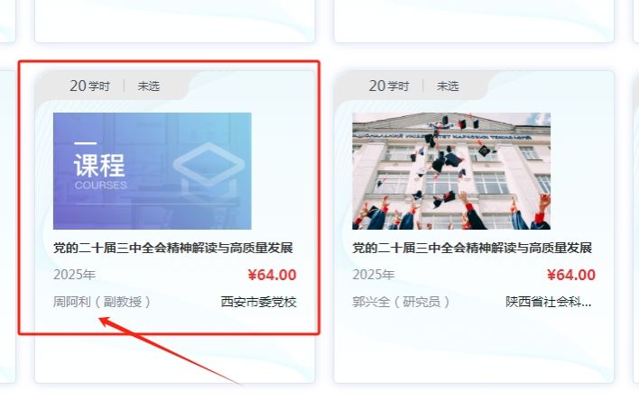 第四步,选择西安市委党校周阿利副教授课程,详见以下图片标注