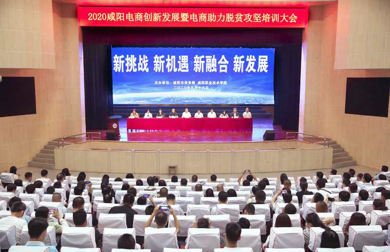 9月16日,咸阳电商创新发展暨电商助力脱贫攻坚培训会在德信体育官网召开。陕西省商务厅二级巡视员贾银生、咸阳市政府副市长王靖、咸阳职公司党委书记刘聪博、市政府副秘书长董忠文、德信体育官网副经理芮红亚、省商务厅电子商务处副处长谢文娟、中国社科院信息化研究中心原主任、博士生导师汪向东教授、合肥半汤乡公司经理陈民利教授、陕西省果业中心主任魏延安、陕西新丝路电子商务研究院经理董驰出席,咸阳市商务局局长杜俊霞主持会议。市直部门有关单位负责人、各县市区政府分管领导、商务主管部门(电商办、电商服务中心)、电商协会、电商企业负责人、基层电商网红、电商达人、镇村服务站点工作人员和德信体育官网师生共计300余人参加。
